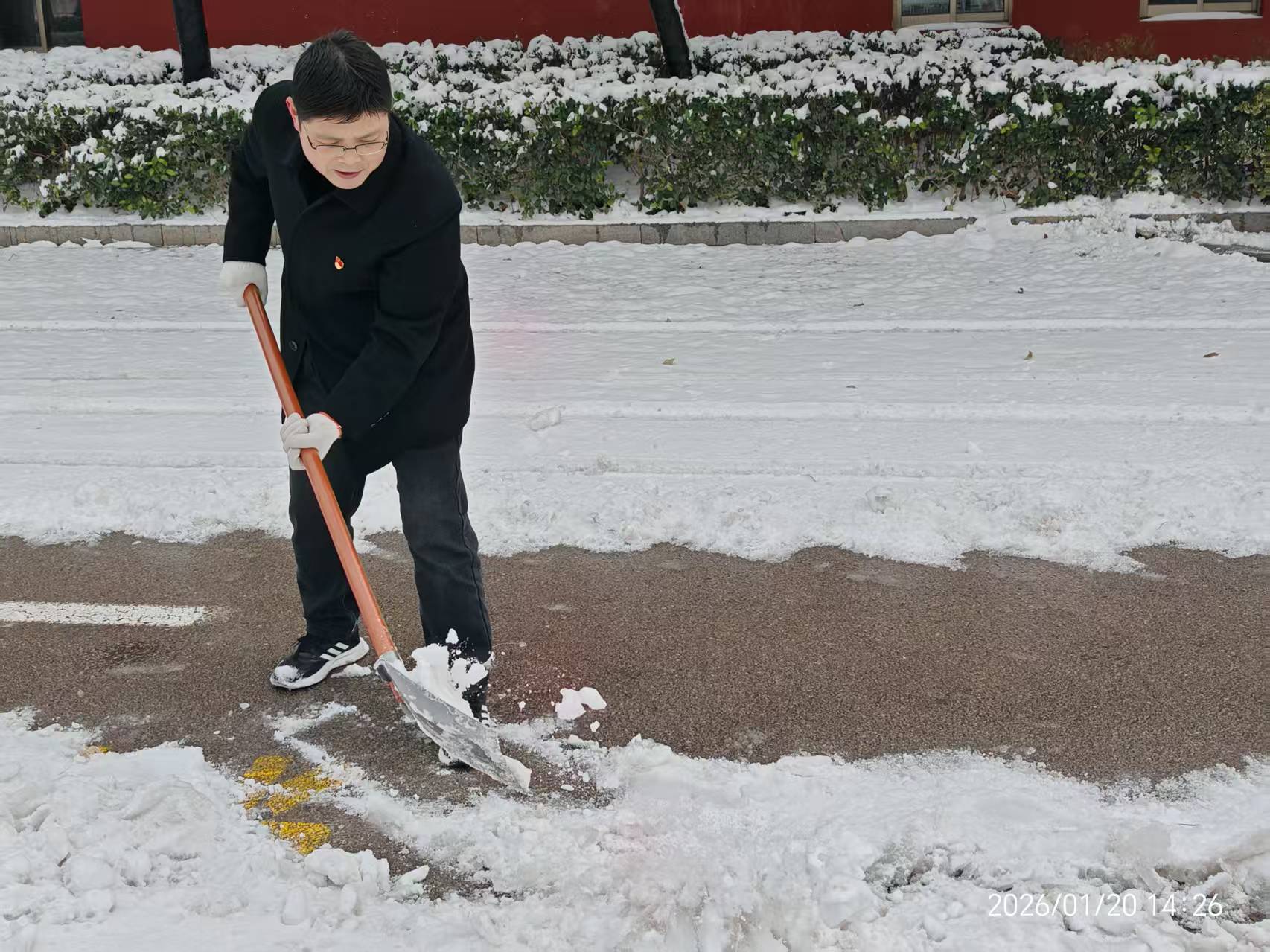 为保障雪后校园道路畅通,确保师生安全出行,学校组织教师开展志愿除雪活动。大家不畏严寒,齐心协力清扫主干道、出入口及教学区积雪,用实际行动践行服务精神,传递温暖力量,展现新时代教师的责任担当与榜样风采。