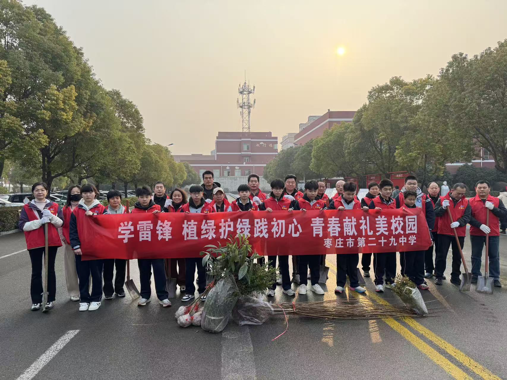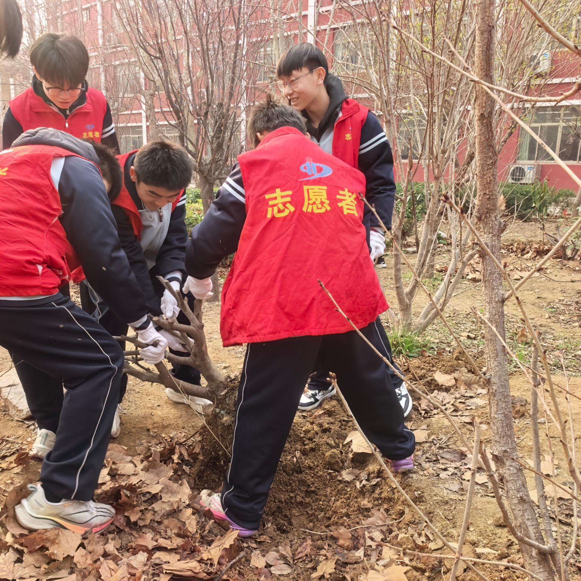 春回大地,万象更新,一年一度的植树节如期而至。为深入贯彻“绿水青山就是金山银山”的生态理念,落实立德树人根本任务,传承雷锋精神,培养我校学生的环保意识、劳动素养和社会责任感,引导学生践行绿色生活方式,主动参与生态保护实践,同时美化校园环境,营造“植绿、护绿、爱绿”的良好校园氛围,特组织本次植树节志愿者服务活动,让学生在劳动中体验快乐,在实践中增长才干,为建设美丽校园、绿色枣庄贡献青春力量。