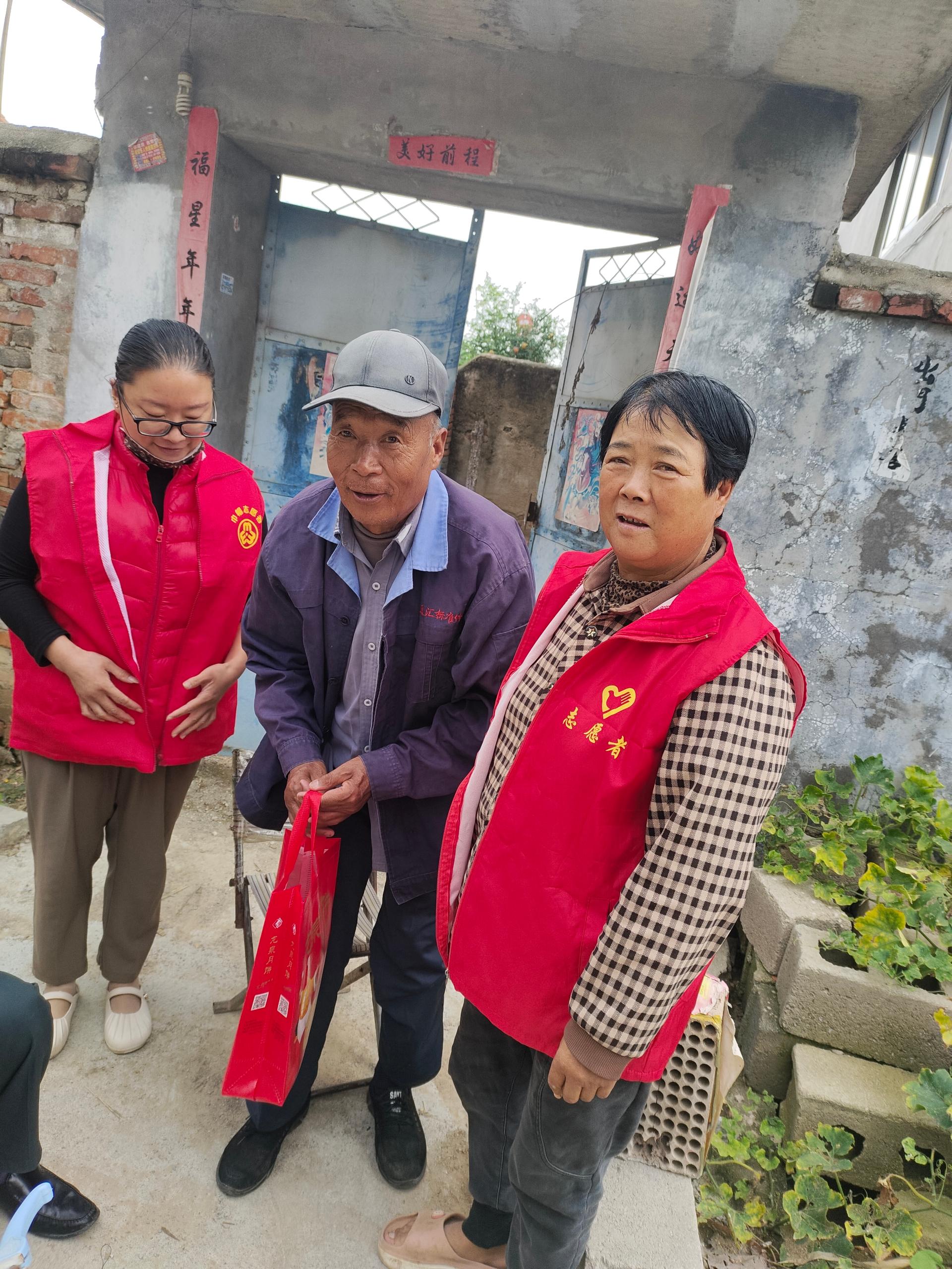 界河镇陈马厂村为孤寡老人送月饼志愿服务活动。中秋节到了,志愿者为孤寡老人送月饼,送去政府给的温暖!同时关心生活