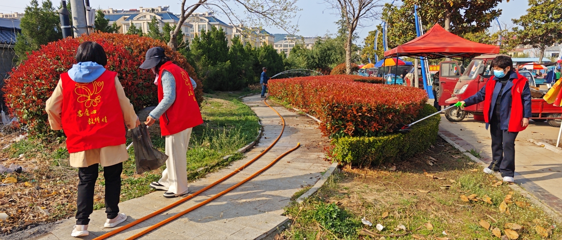 主要进行环境卫生清洁,市容秩序维护,文明行为劝导,组织文明实践志愿者清理地面暴露垃圾、协助整治区域内非机动车乱停乱放等文体。
