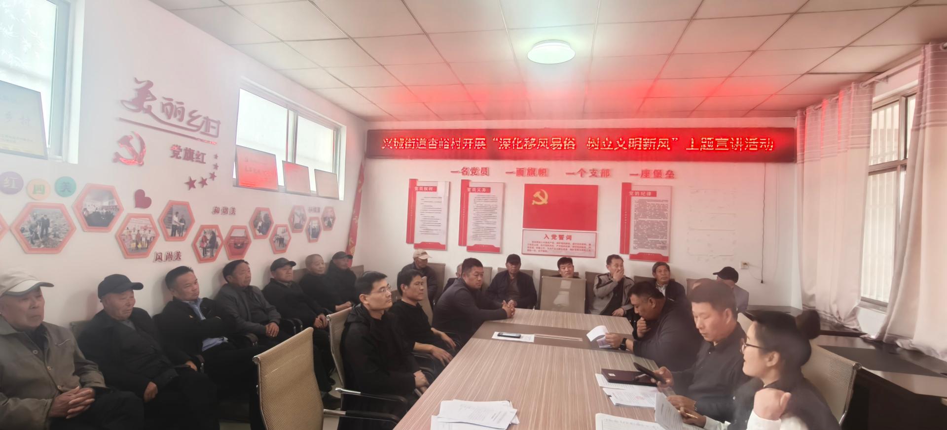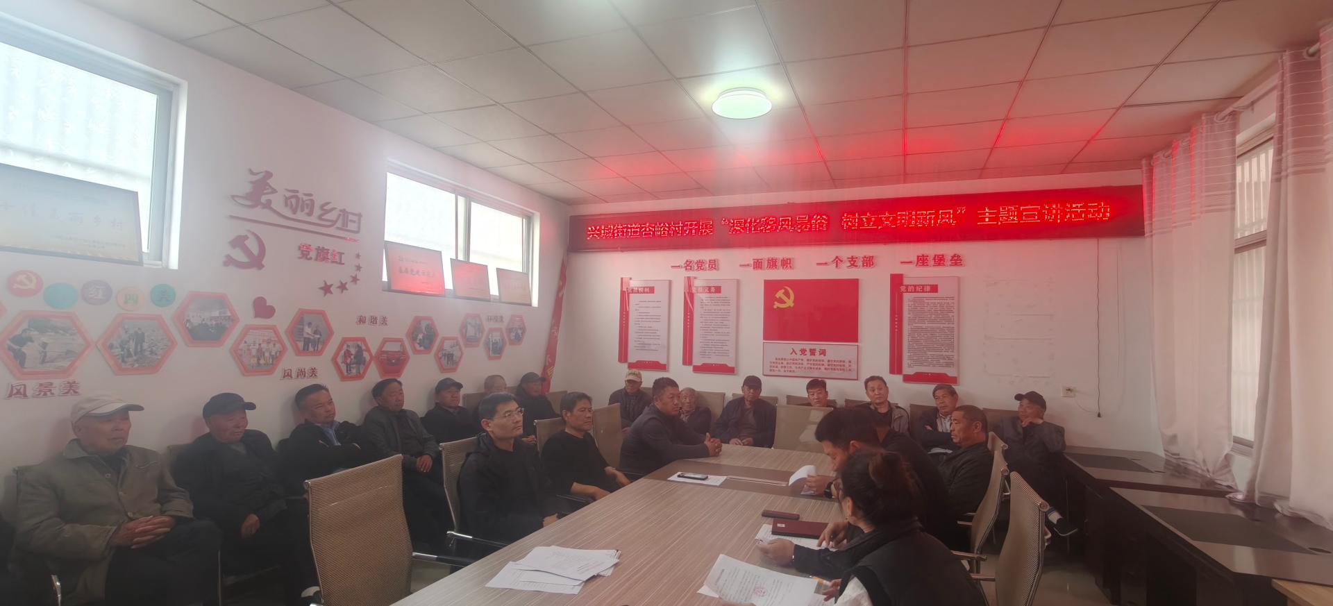 兴城街道杏峪村开展“深化移风易俗 树立文明新风”主题宣讲活动!本次活动参加人员为杏峪村党支部部分党员以及两委成员