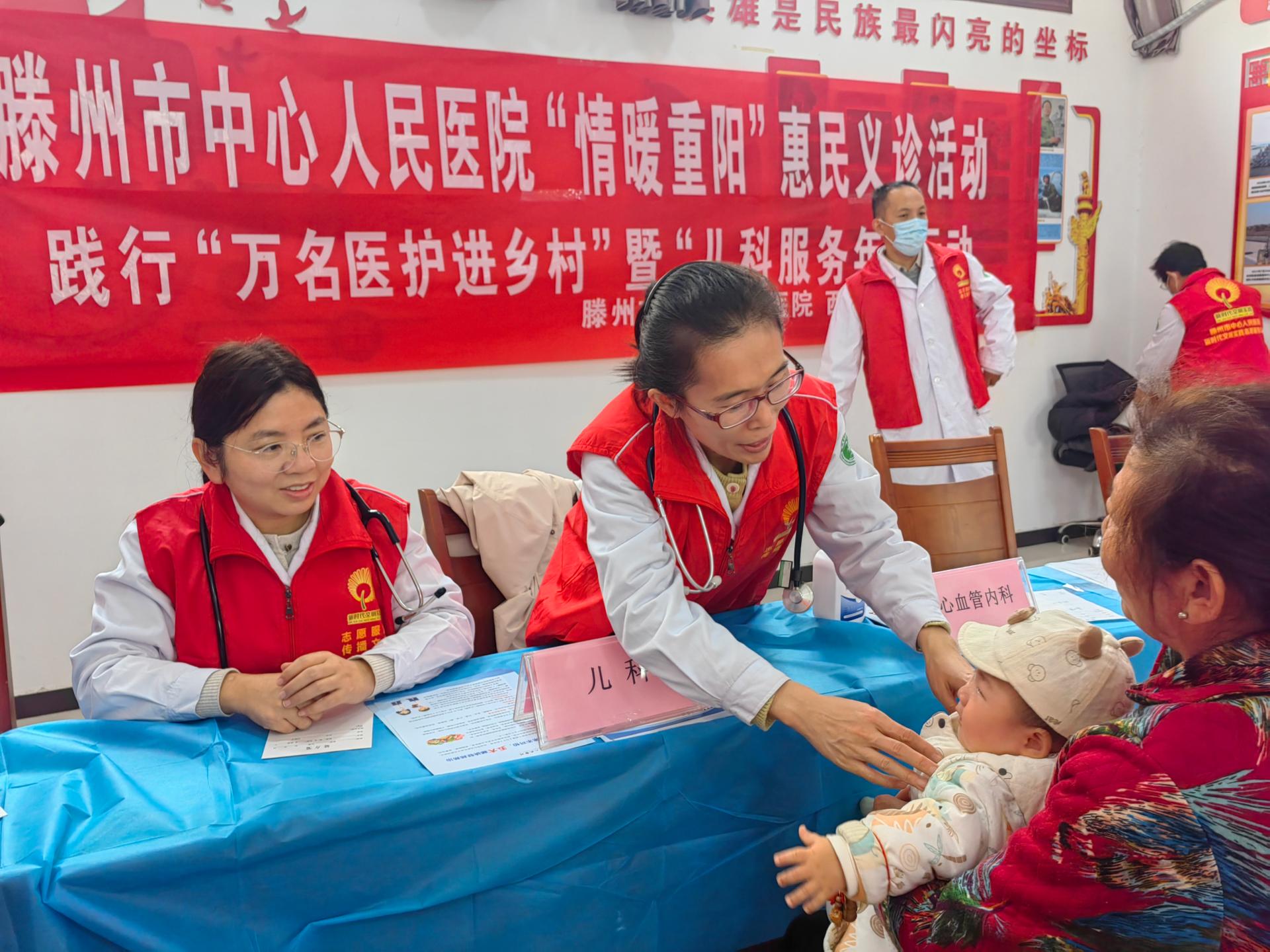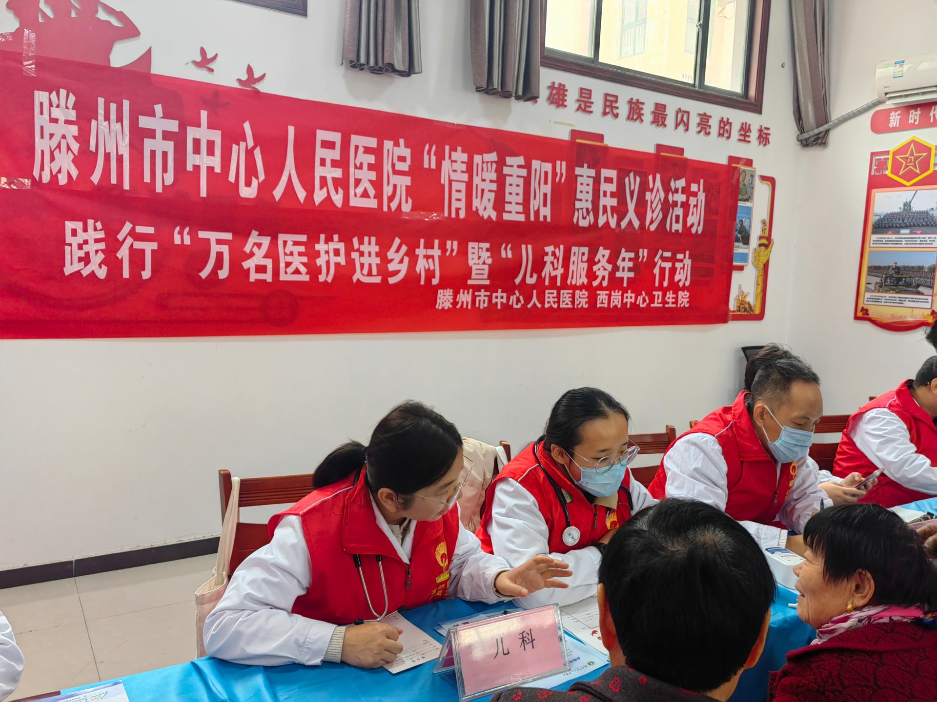 重阳节来临之际,为践行“万民医生下基层”及“儿科服务年”号召,滕州市中心人民医院走进西岗义诊活动。提升群众满意度,健康传播!