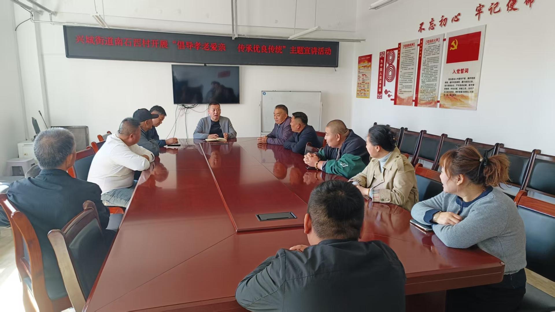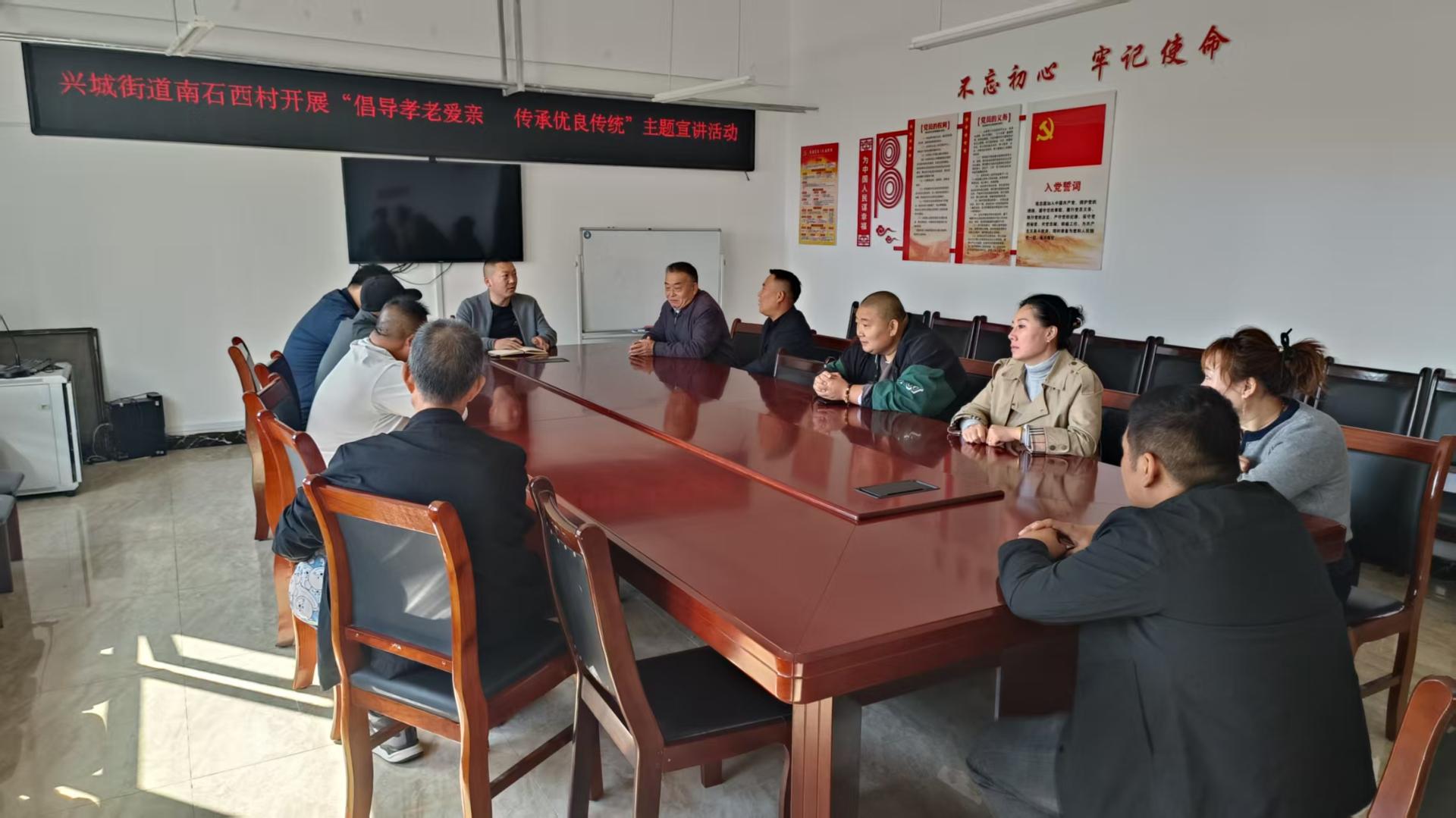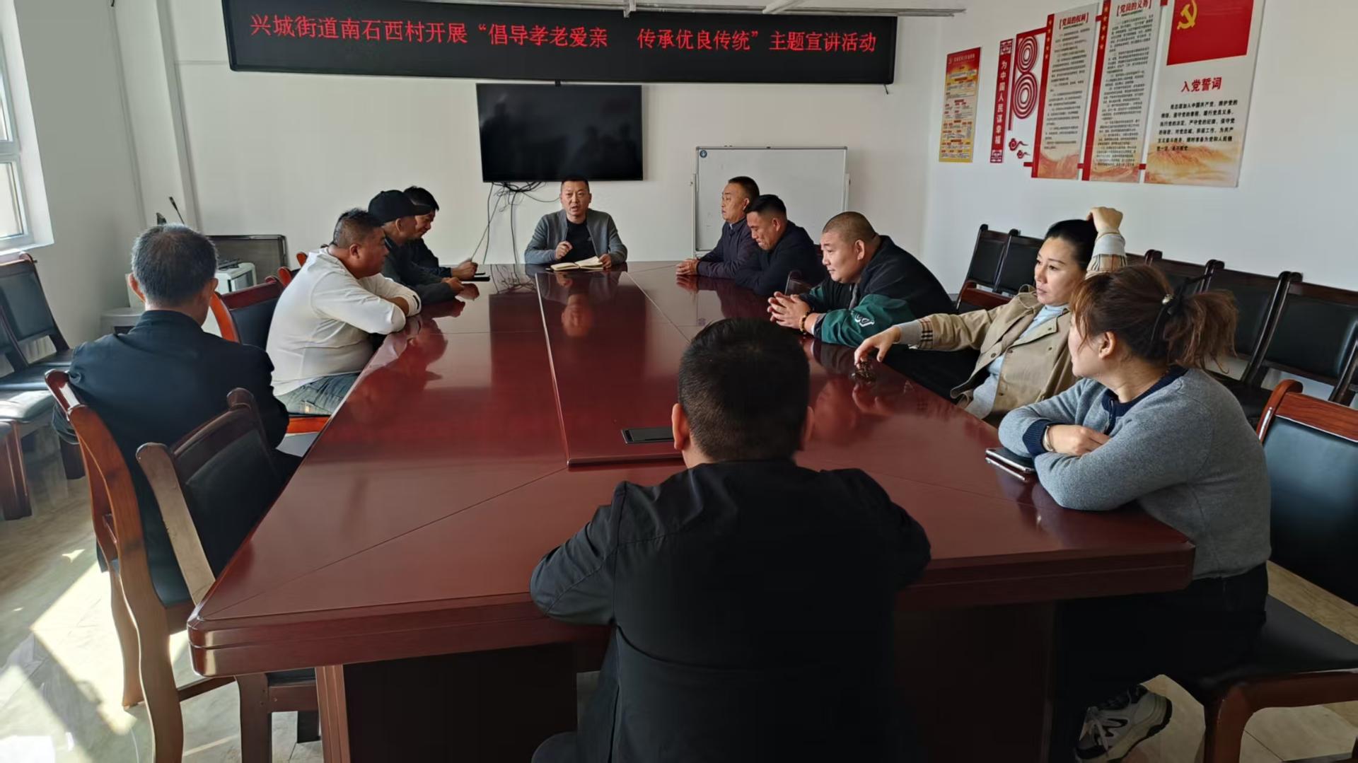 兴城街道南石西村村委会开展倡导孝老爱亲,传承优良传统主题宣讲活动,地址安康苑物业办公室二楼会议室,时间一小时