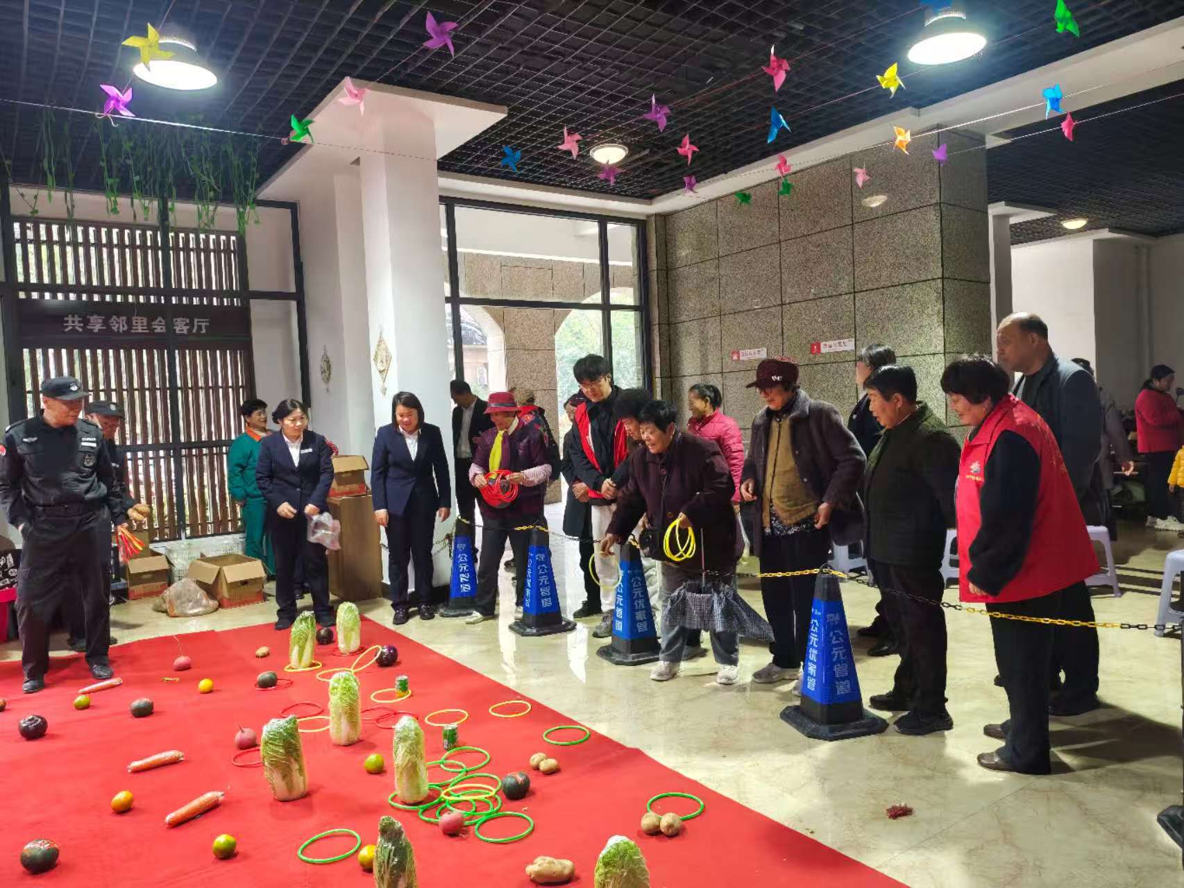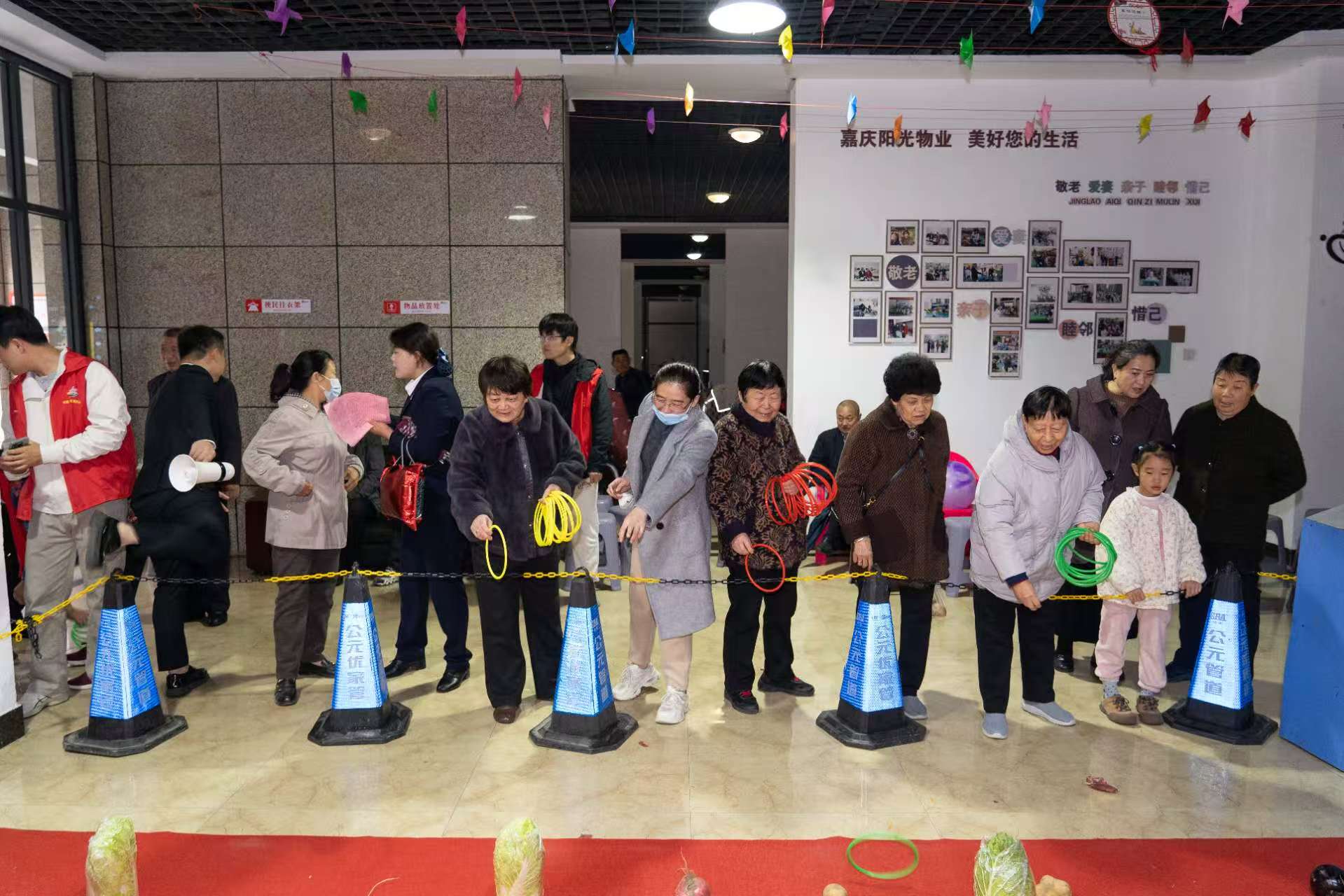 开展“情暖重阳 欢乐套圈” 主题活动,为小区的老年朋友们送上一份别样的节日关怀。​提前筹备了丰富的时令蔬菜作为礼品,每一份都新鲜实用,贴合长辈们的日常生活需求。