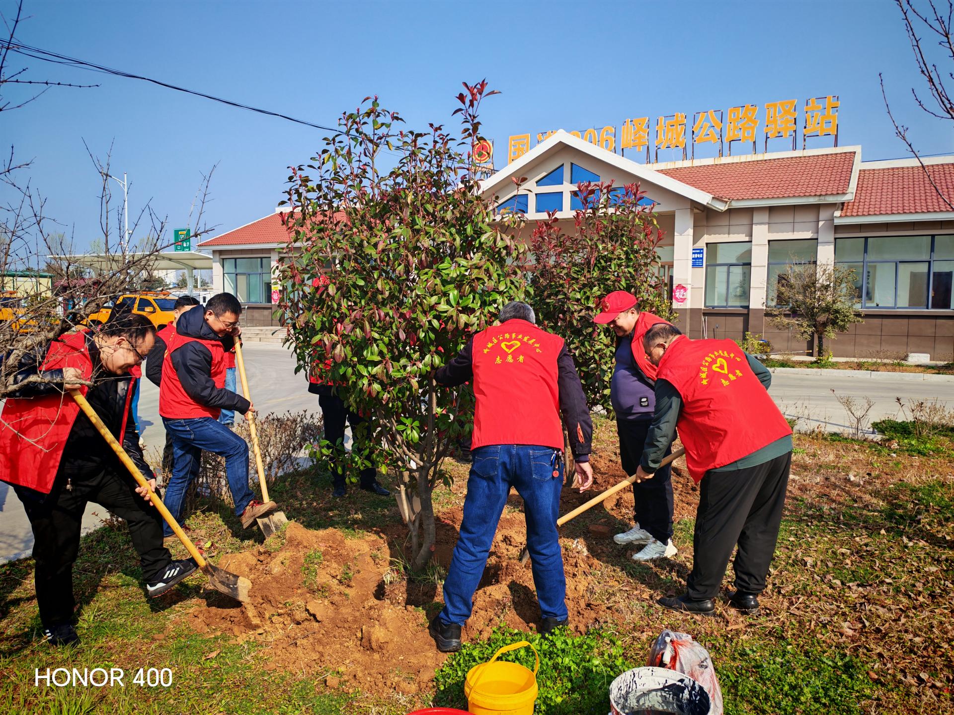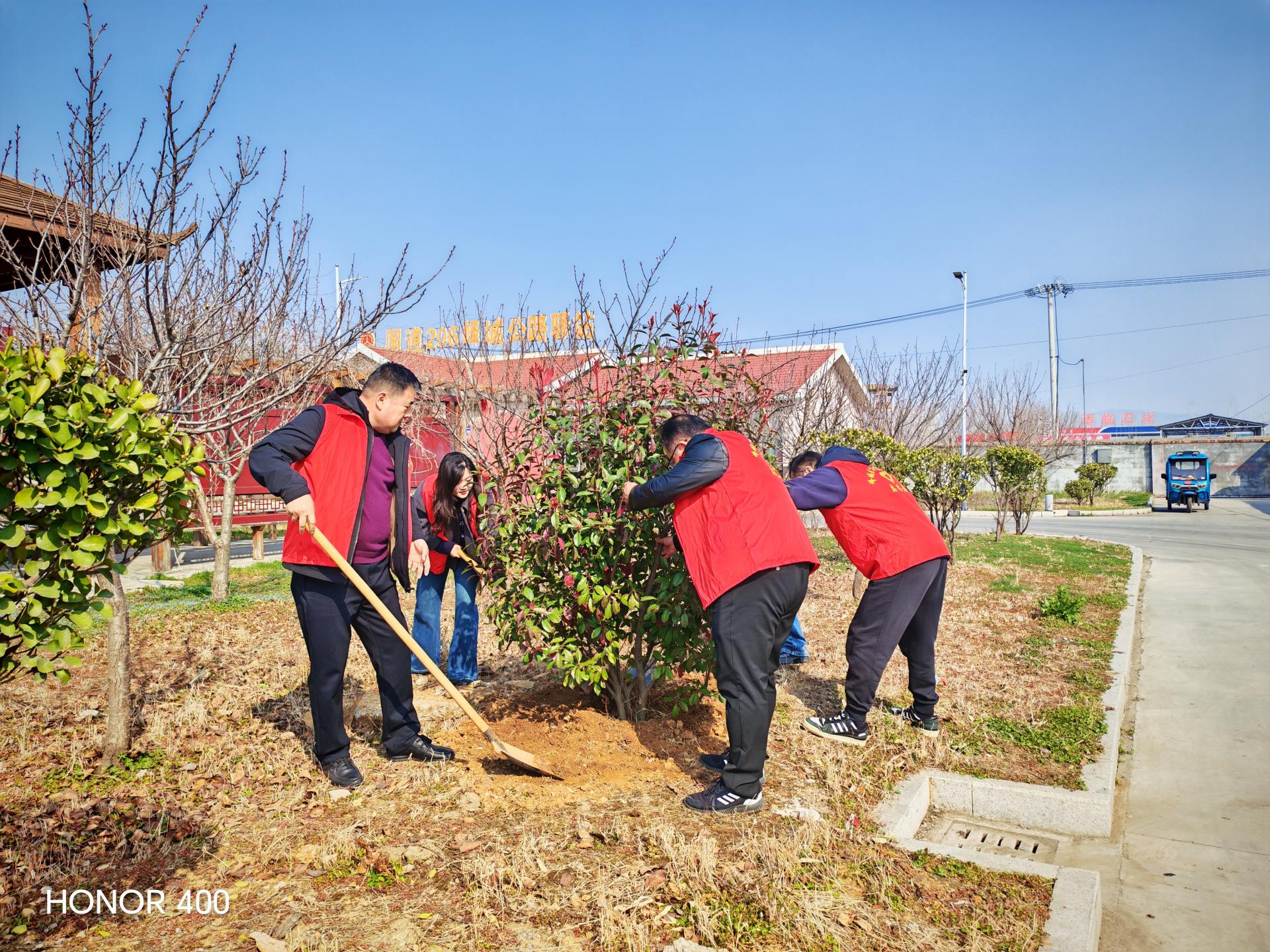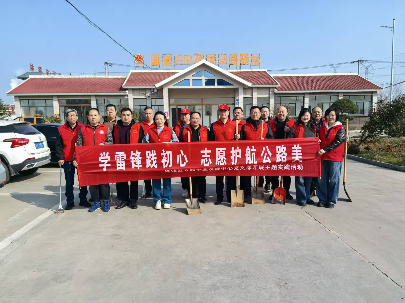 峄城区公路事业发展中心组织全体党员在国道206公路驿站开展学雷锋践初心实践活动。一是普法宣传;二是补栽红叶石楠树,;三是清理垃圾。