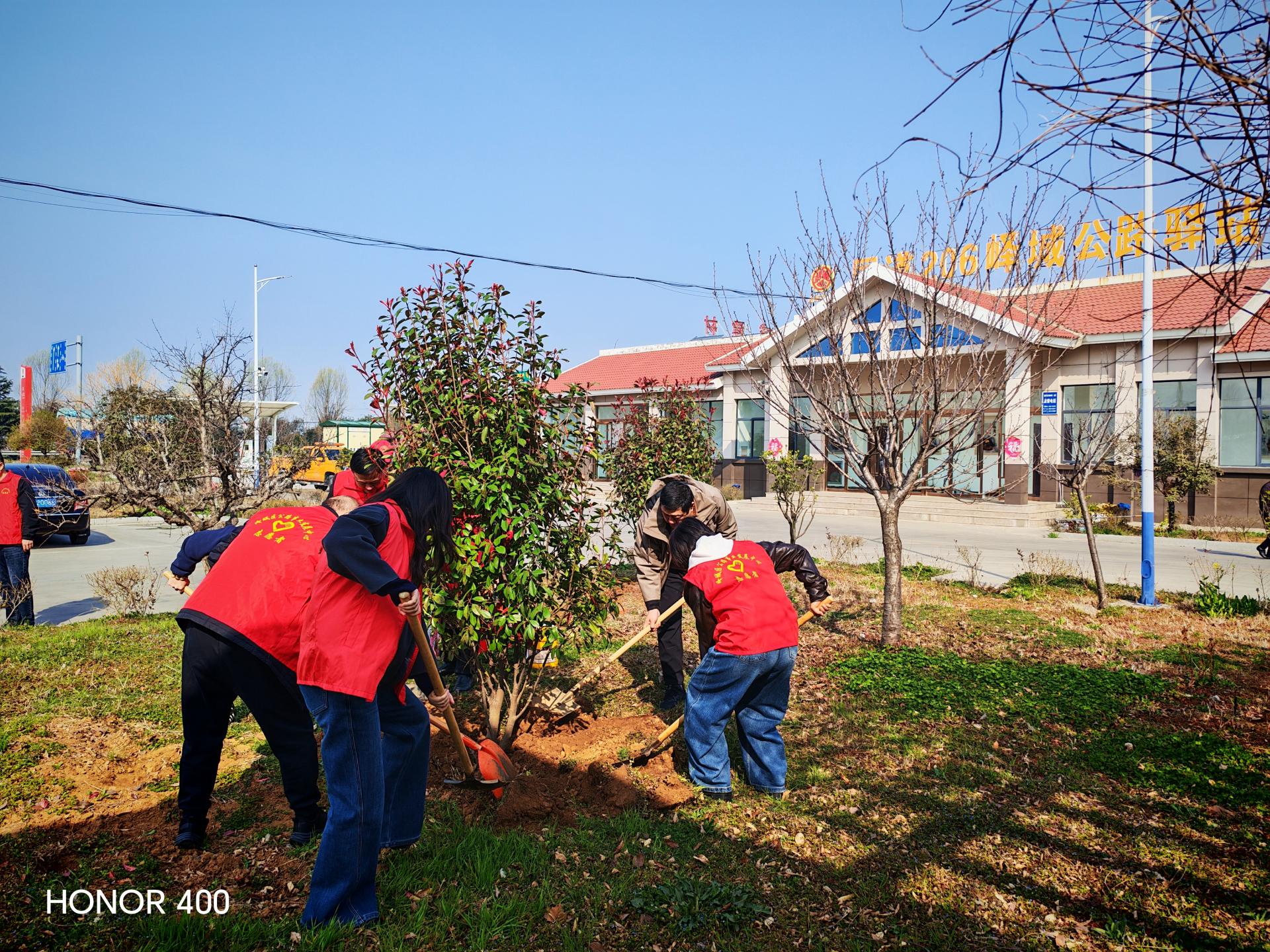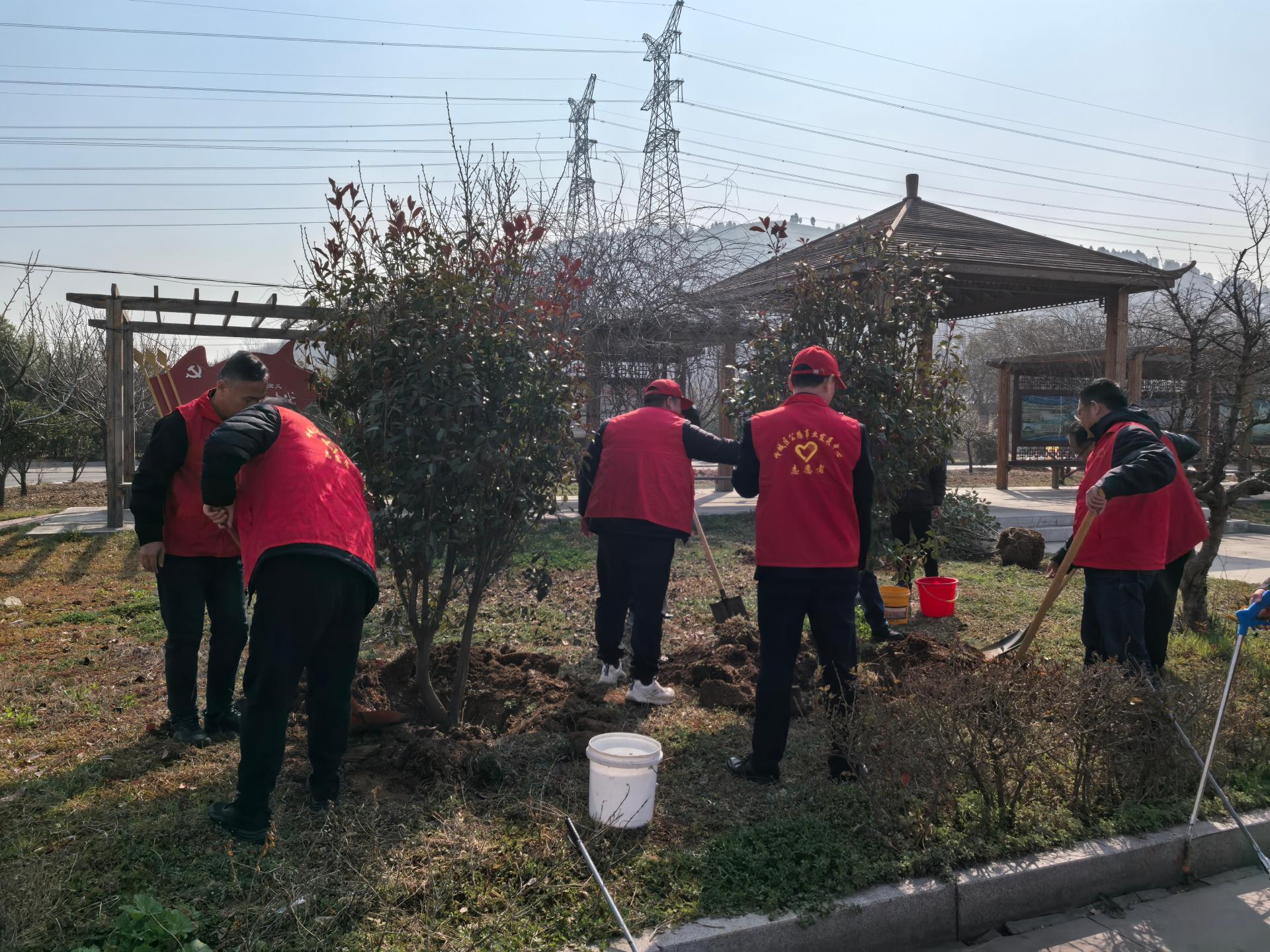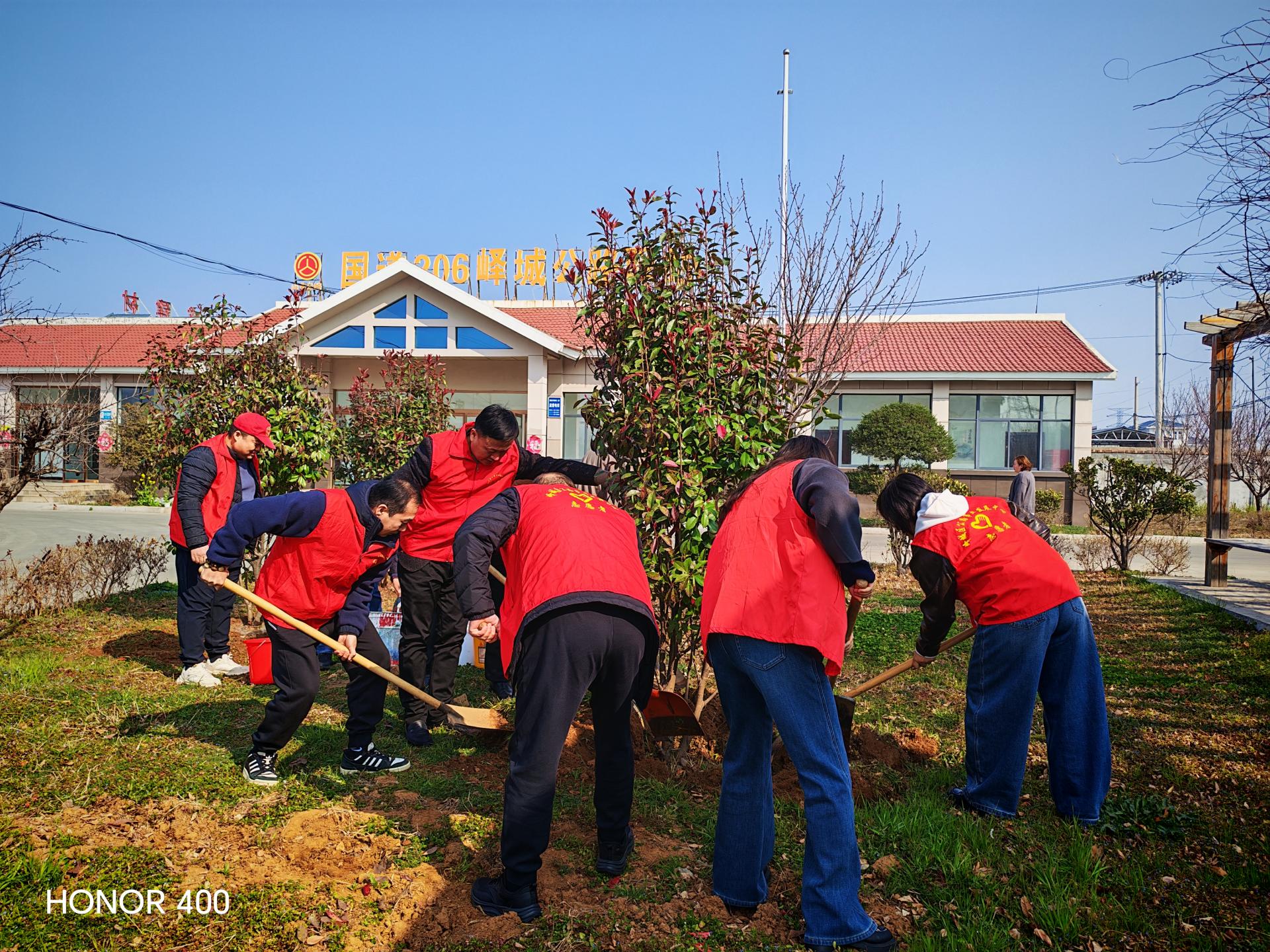 峄城区公路事业发展中心组织全体党员在国道206公路驿站开展学雷锋践初心实践活动。一是普法宣传;二是补栽红叶石楠树,;三是清理垃圾。