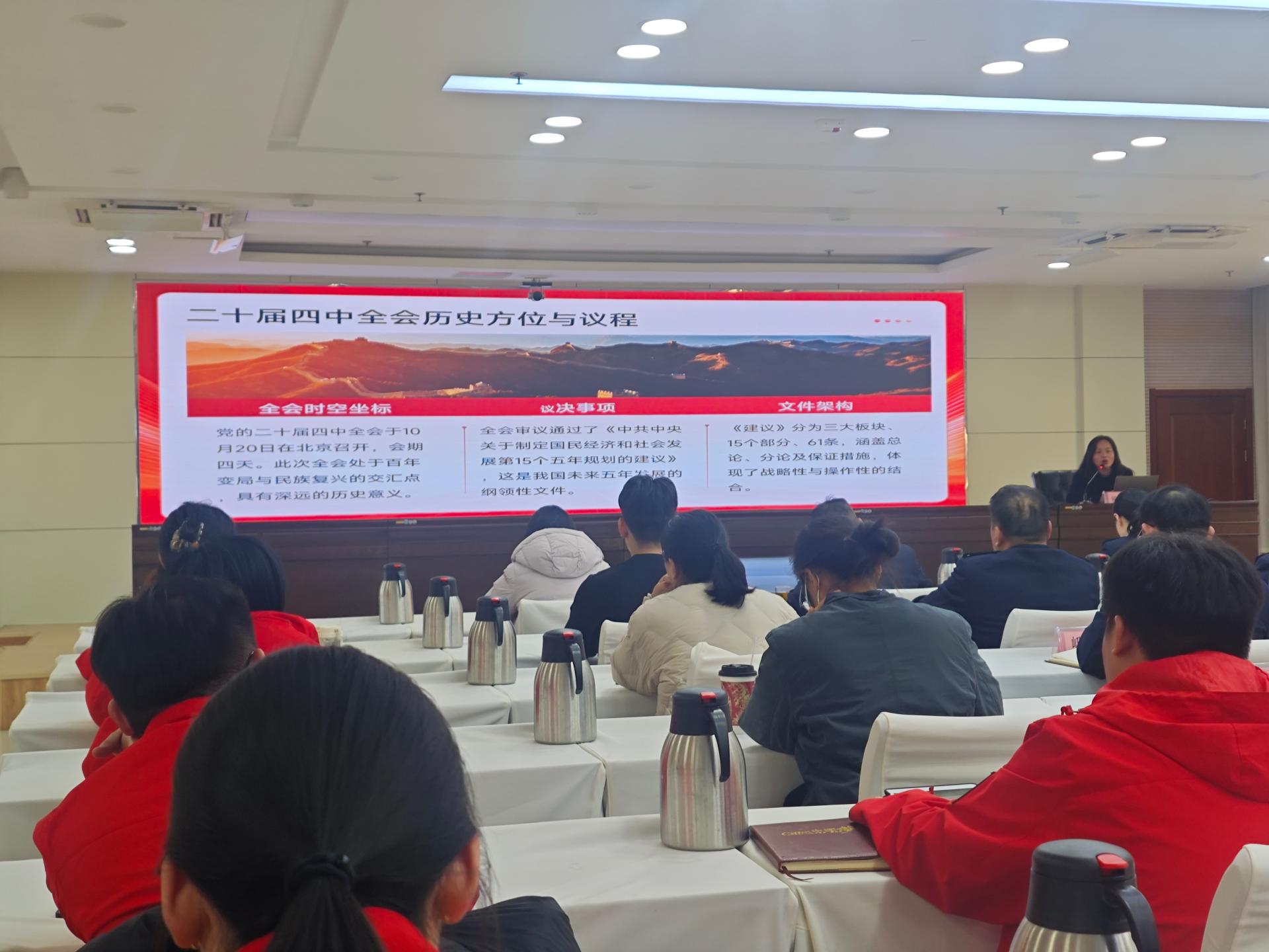 为全面深入学习贯彻党的二十届四中全会精神,引导全区广大党员干部统一思想、凝聚共识,切实把智慧和力量汇聚到落实全会确定的各项目标任务上来,为“十四五”顺利收官、“十五五”良好开局筑牢思想根基。组织各单位联合开展学习全会精神宣讲活动。