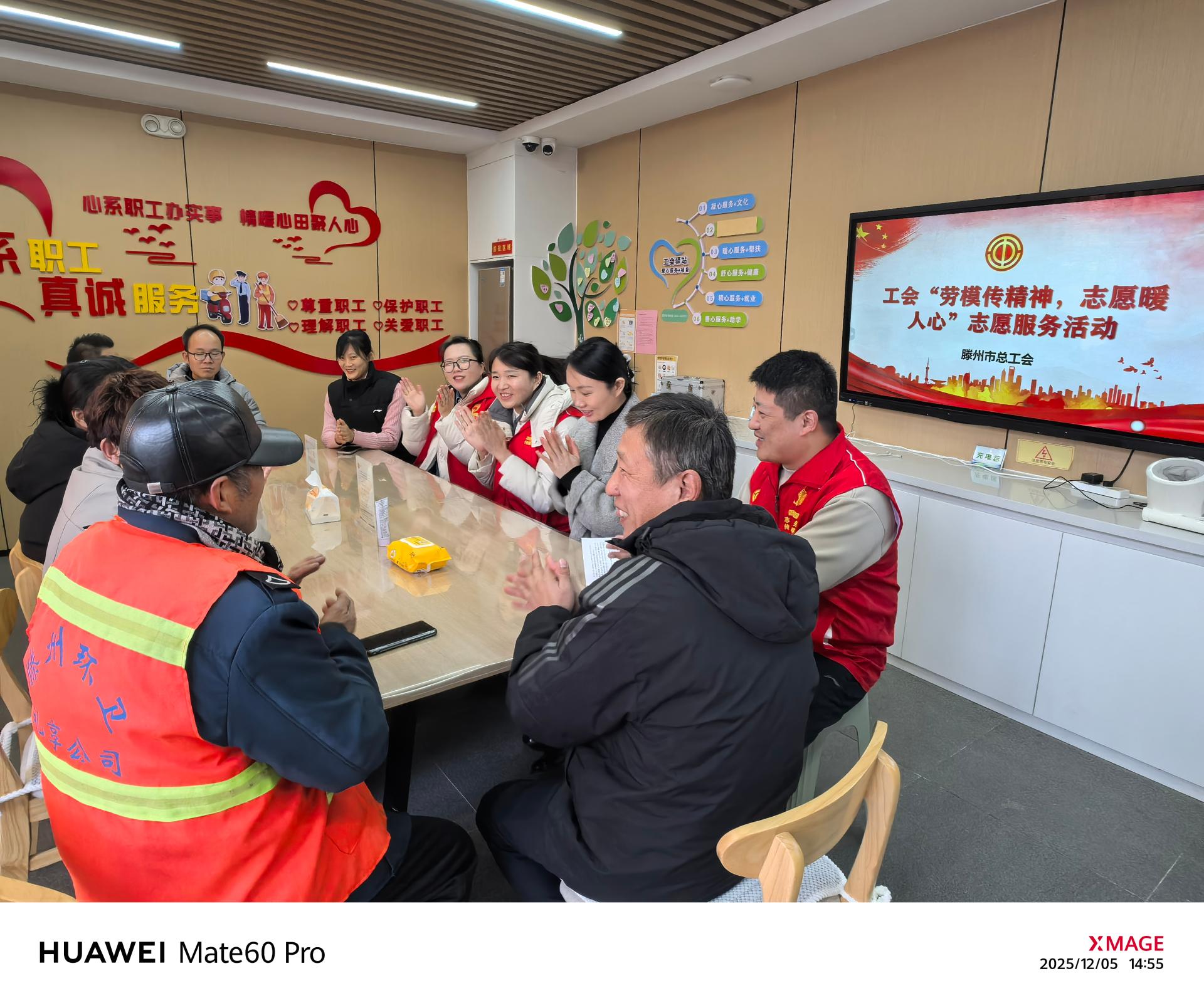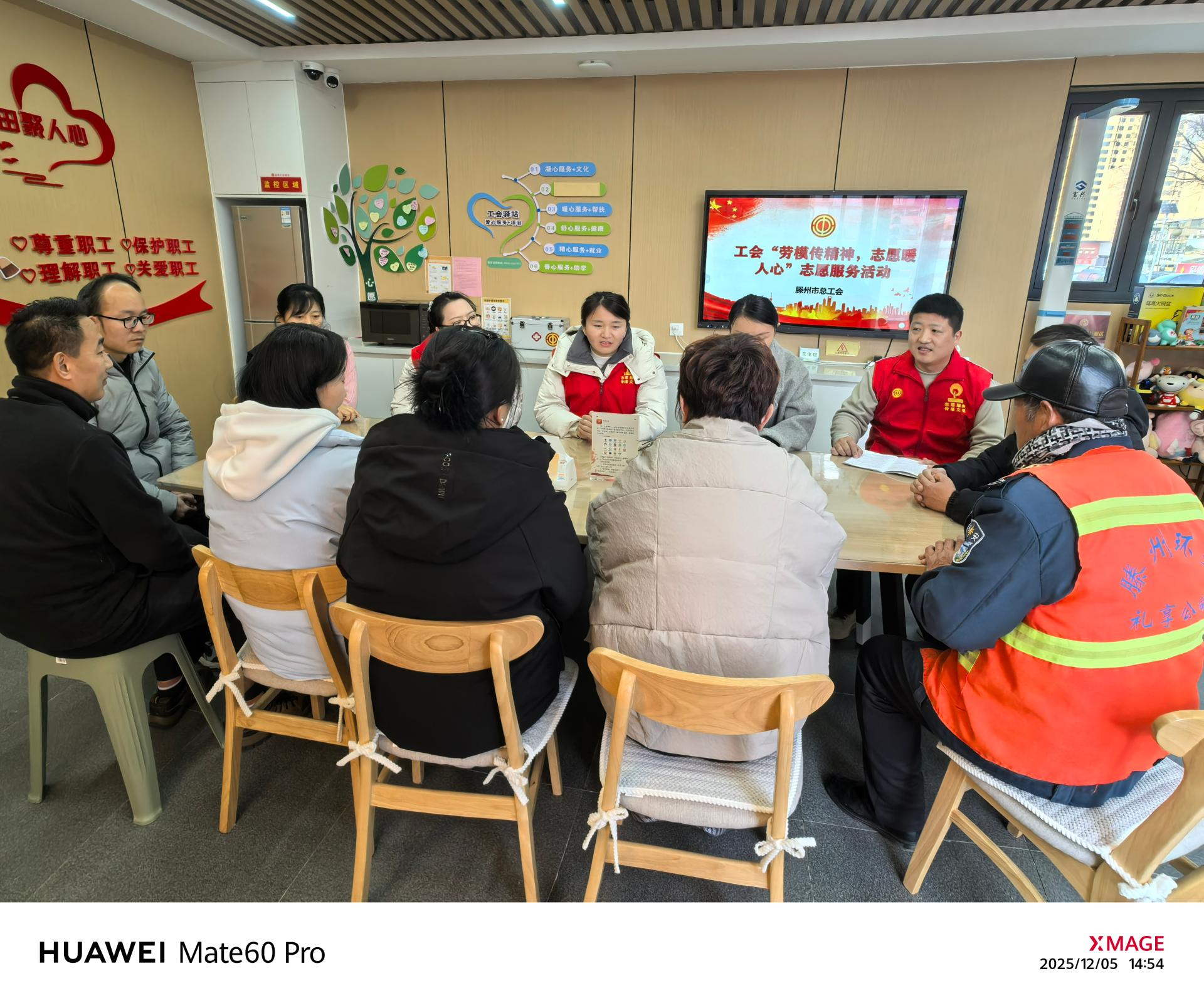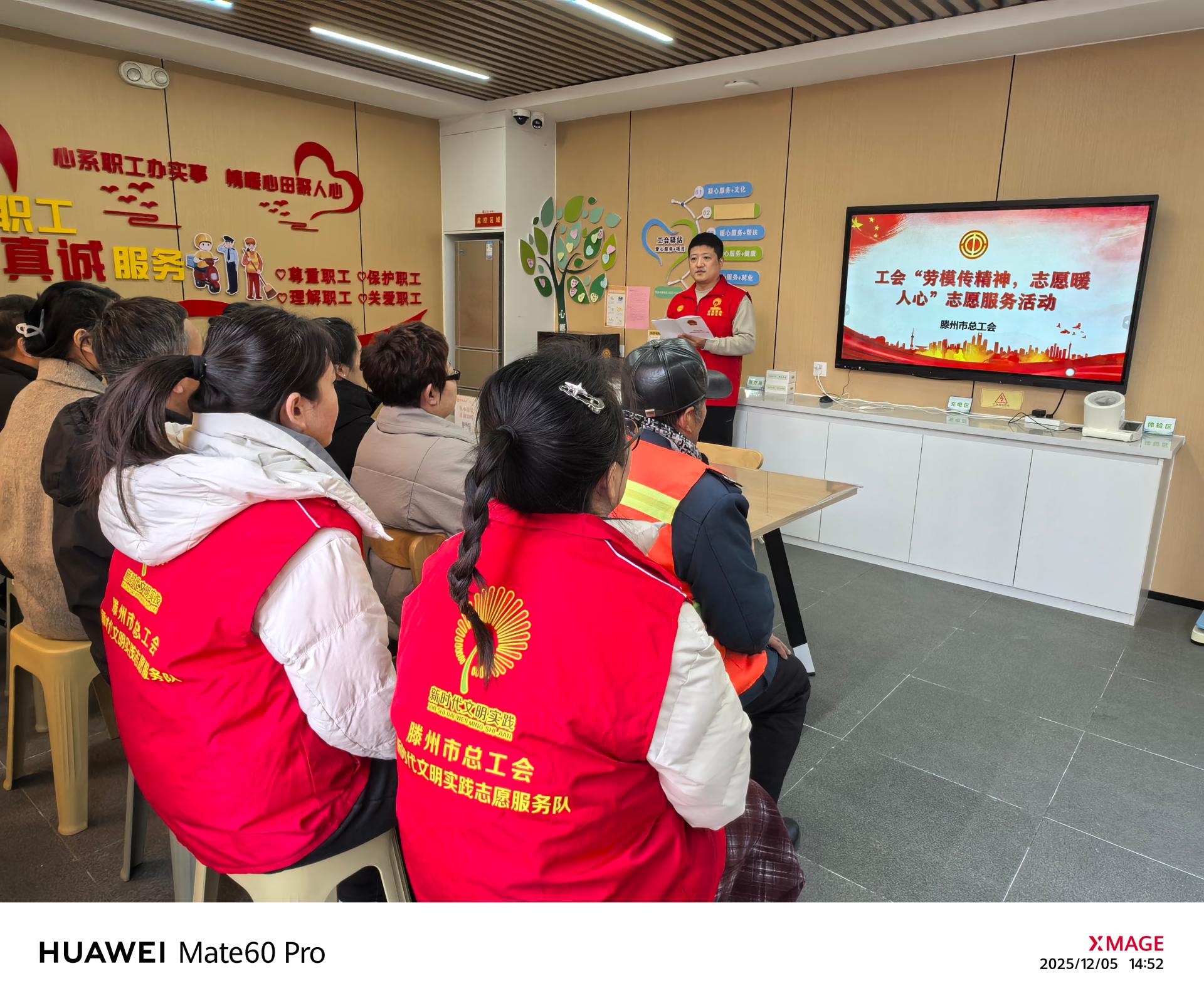 为弘扬劳模精神与志愿精神,丰富职工群众精神文化生活,凝聚基层奋进力量,12月5日国际志愿者日前后,市总工会到工会驿站开展工会“劳模传精神,志愿暖人心”志愿服务活动,通过劳模宣讲赋能、互动答疑解惑、暖心互动环节,将劳模的奋斗故事与精神力量送到一线,激励广大职工群众爱岗敬业、勇于担当。