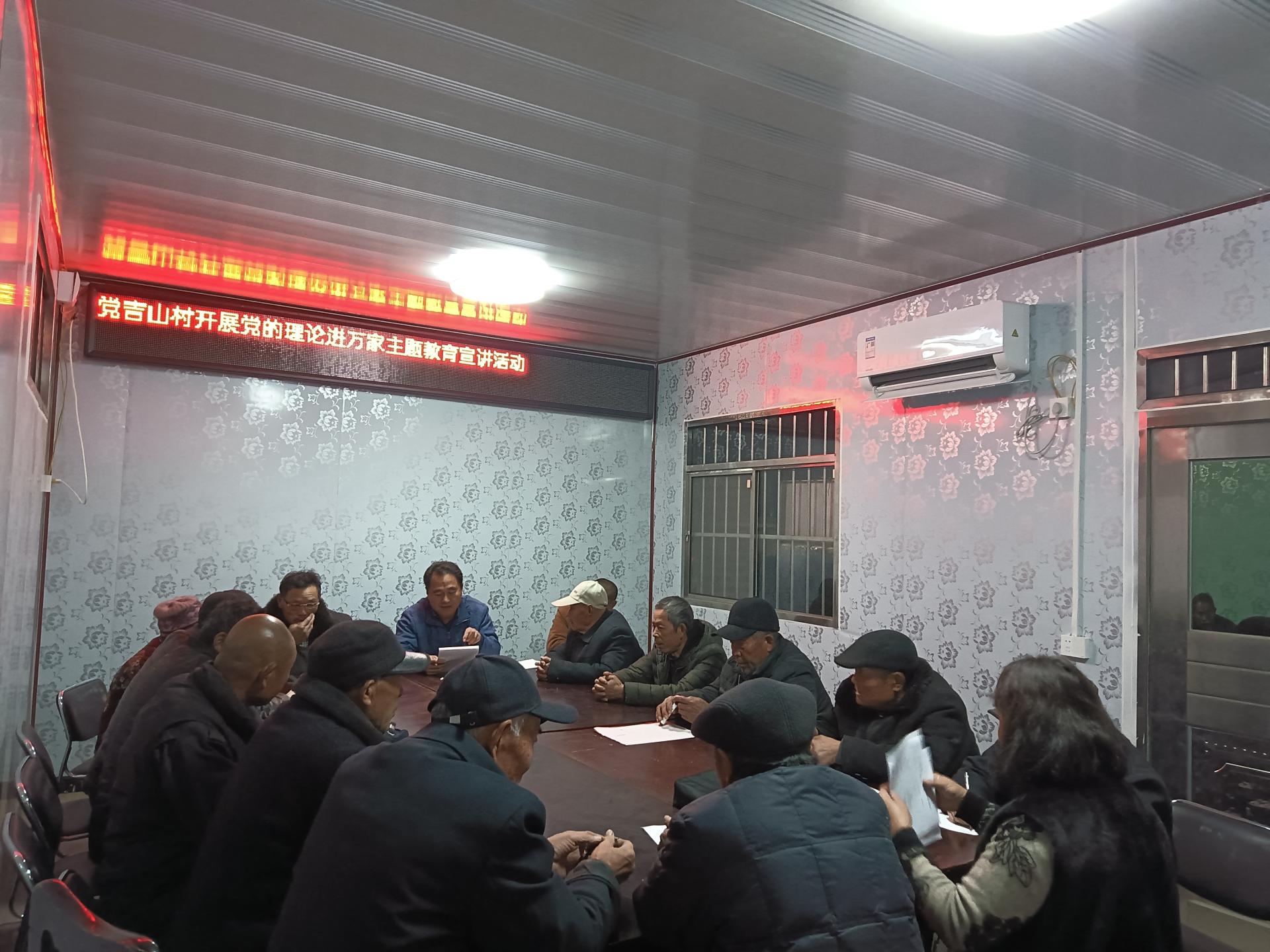 12月11日,党吉山村开展“党的理论进万家”主题宣讲活动。 活动中,宣讲员以通俗易懂的语言,结合生活实际,以“接地气”的方式传播党的创新理论、宣讲党的惠民政策,把“书面语”变成“口头语”,结合理论、实际,分析了全面从严治党、贯彻人民至上的深刻内涵。同时以身边小事入手,用小故事解读“大道理”,用通俗易懂、鲜活生动的方式把党的创新理论与生活中的“柴米油盐”融在一起,让广大群众喜欢听、记得住、悟得透。