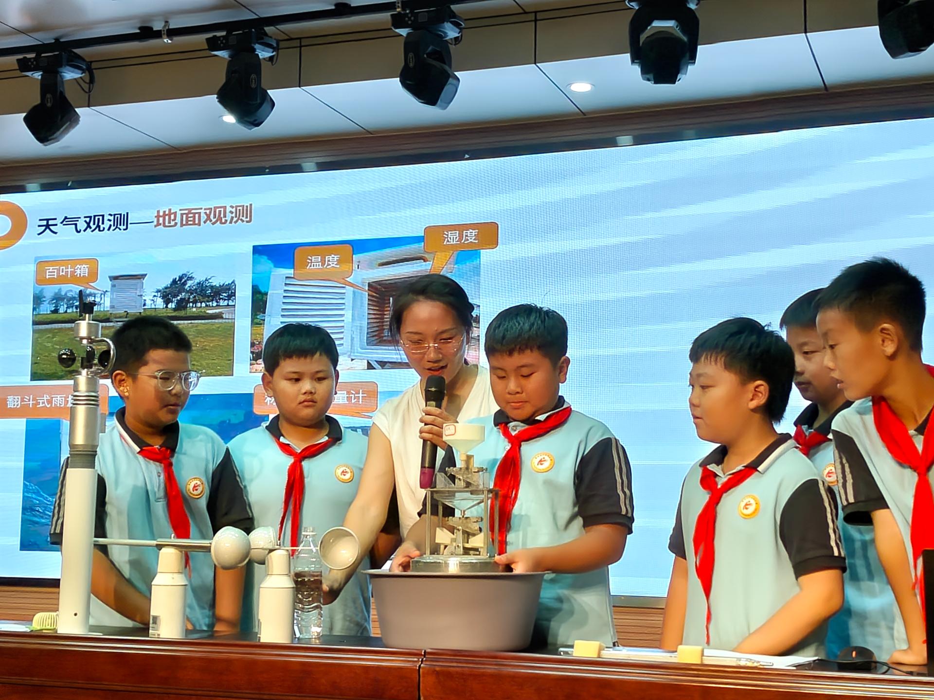 气象科普人员以通俗易懂的语言,讲解天气与气候的差异,揭开天气预报的密码,深入介绍人工影响天气,展示专业仪器。