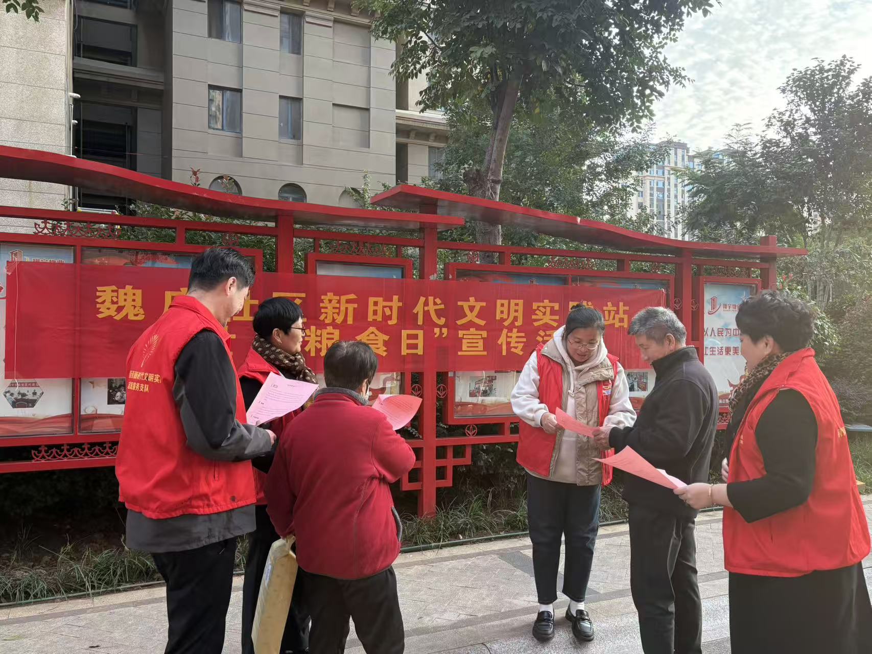 2025年10月16日是第45个世界粮食日。为弘扬勤俭节约的传统美德,增强社区居民的爱粮节粮意识,10月15日,在荆河街道魏庄社区新时代文明实践站党员志愿服务队组织开展“世界粮食日”宣传活动。