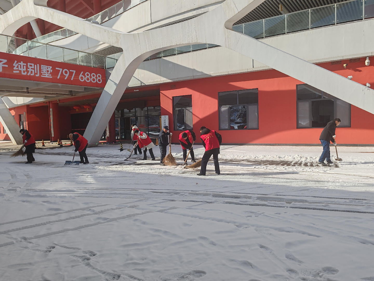 枣庄市老干部活动中心扫雪志愿服务活动,活动地点为市老干部活动中心(枣庄老年大学)办公区域附近场所和周边道路,保障附近通行人员安全。