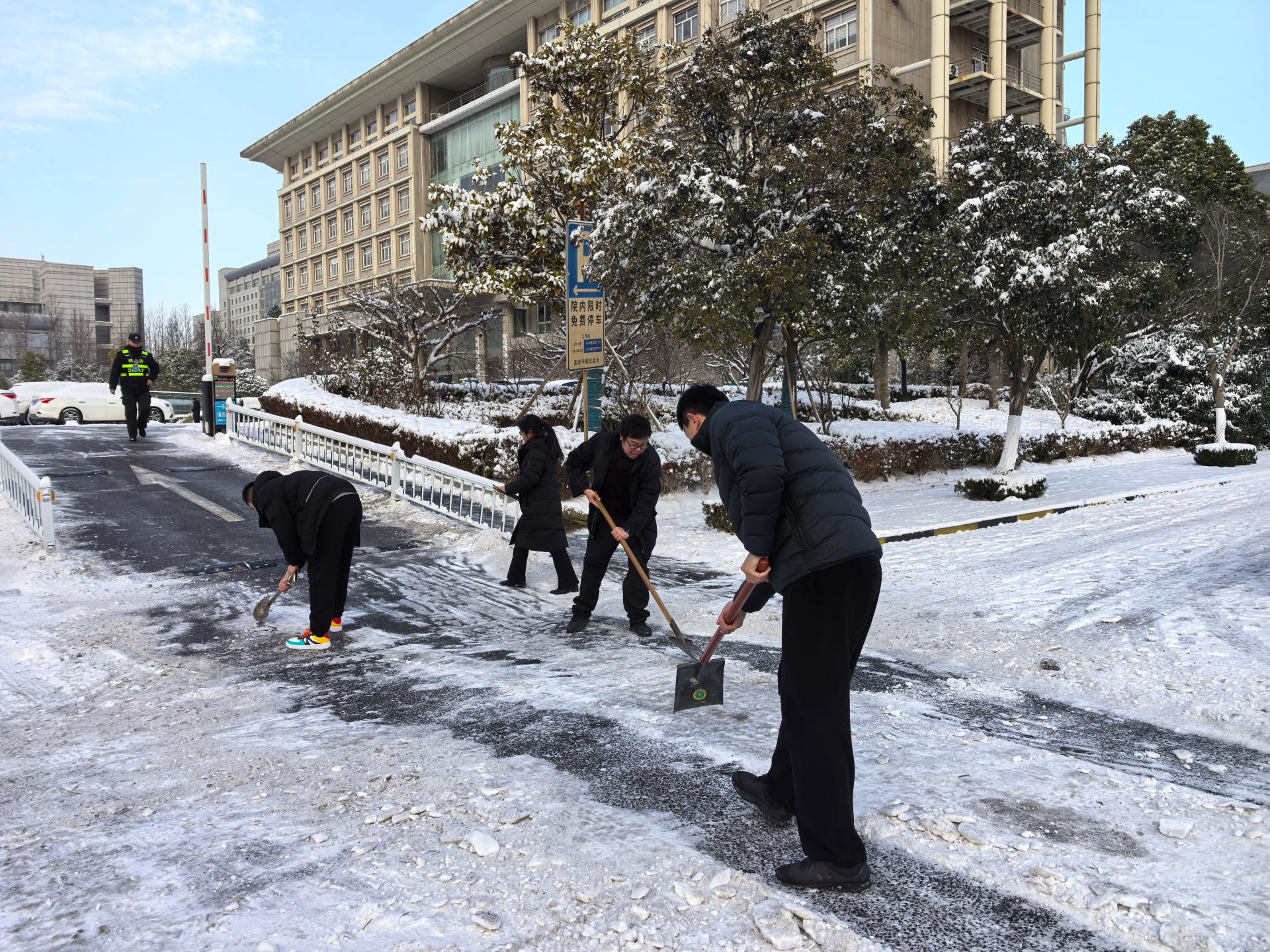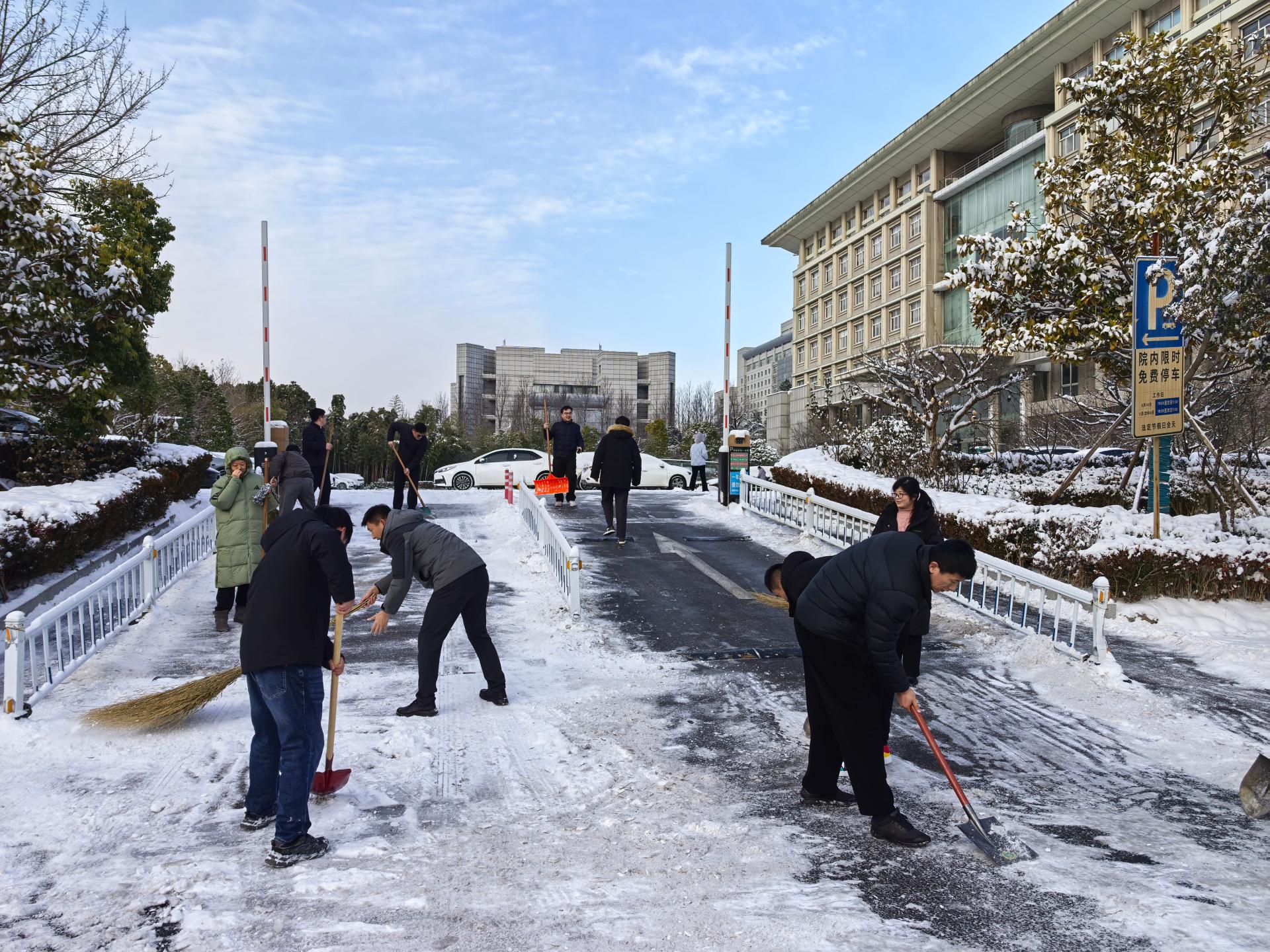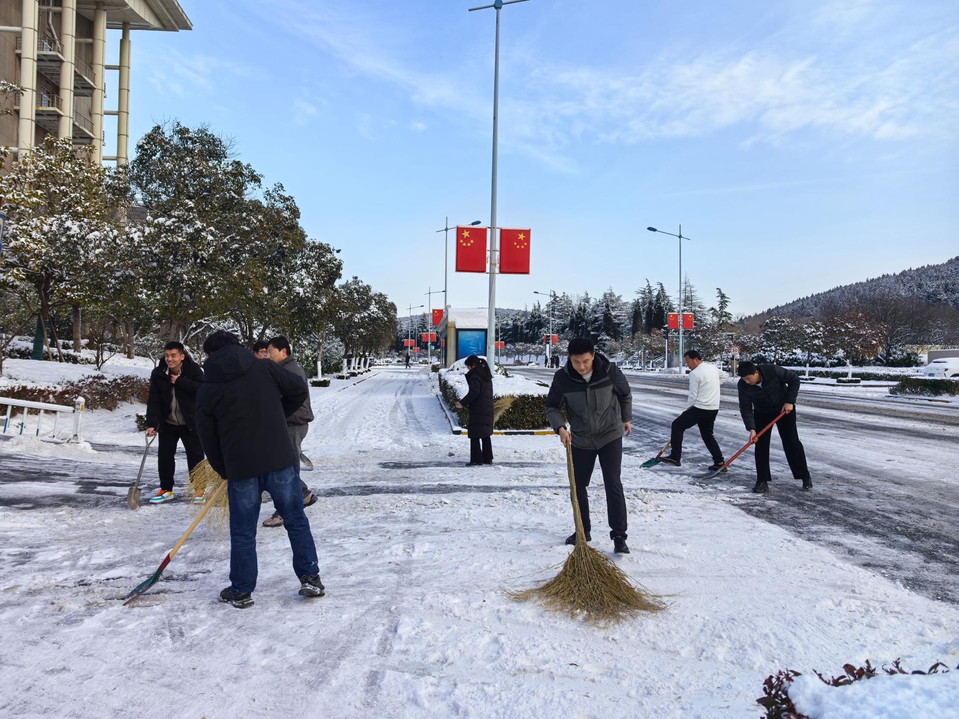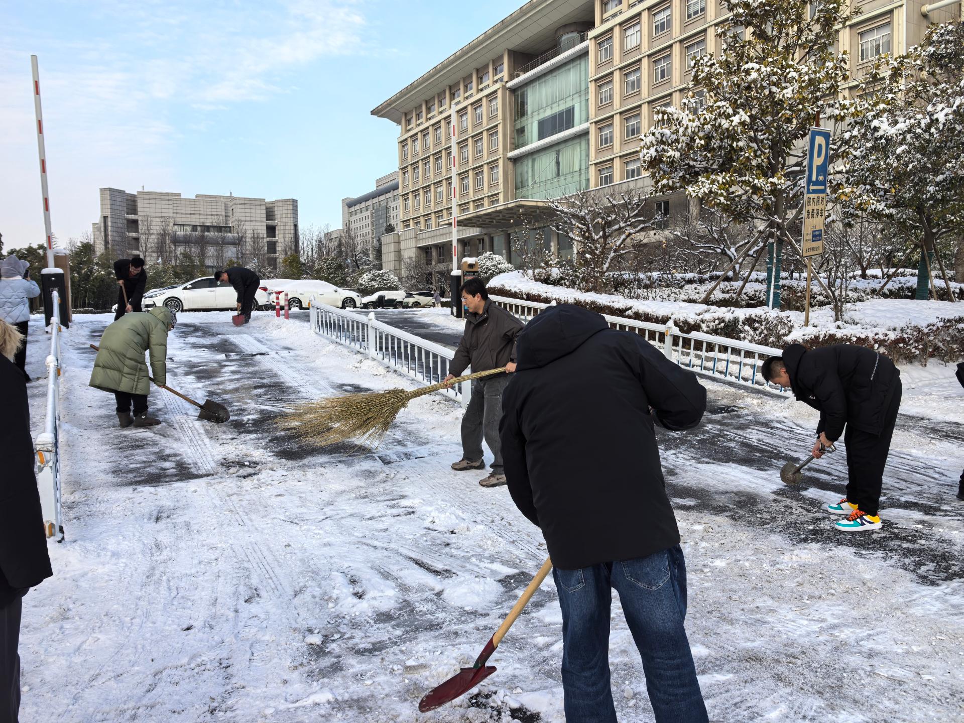 组织志愿者清扫单位周围、街道社区积雪积冰,保障居民,特别是老人、儿童的出行安全与便利,用行动温暖冬日。