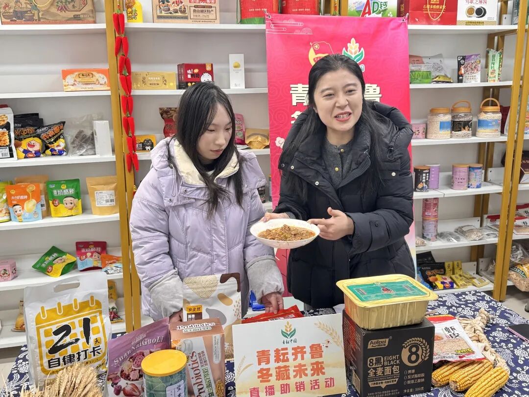 冬日已至,年味渐浓。为深入贯彻习近平总书记关于 “三农” 工作及青年工作的重要论述,积极响应山东省《关于参加首届全国大学生新时代文明实践风采展示大赛的工作提示》的文件要求,近日,团区委联合中心街街道团工委在曙光一线直播基地开展“青耘齐鲁 冬藏未来”直播助销活动,专业主播和“青鸟计划”返家乡大学生通过线上推介、实时互动,将家乡风味与助农情怀传递给千家万户,为乡村振兴注入一股暖流。