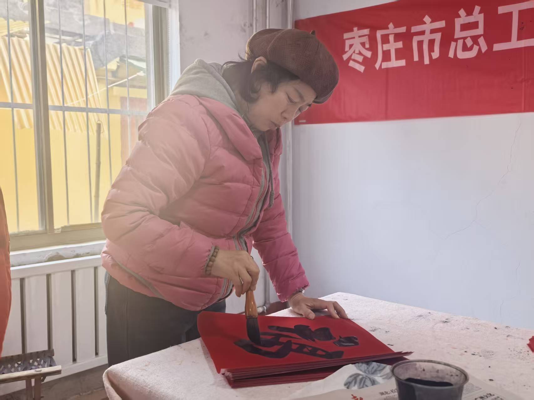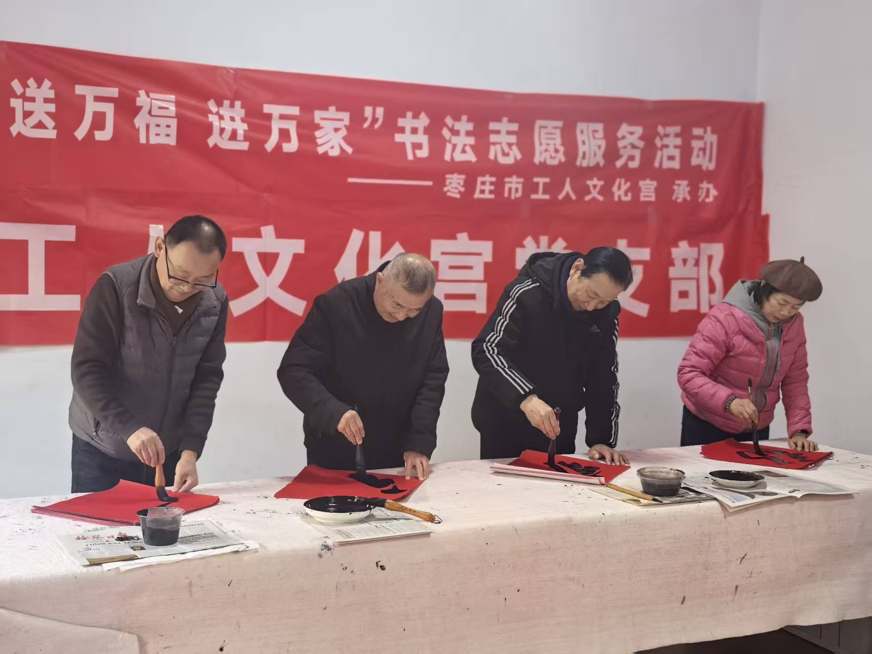 为弘扬中华优秀传统文化,营造喜庆祥和的节日氛围,2月2日,文化路街道龙头社区联合枣庄市总工会、枣庄市工人文化宫在社区新时代文明实践站开展“送万福  进万家”文化惠民活动,为辖区居民送上新春祝福。