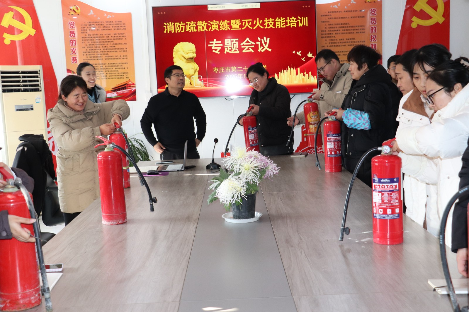 【培育和践行社会主义核心价值观】我会使用灭火器——枣庄二十六中学举行消防安全演练